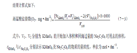 水樣加入硫酸酸化后,加入一定量的高錳酸鉀溶液,并在沸水浴中加熱反應一定時間。然后加入過量的草酸鈉標準溶液,使之與剩余的高錳酸鉀充分反應。在用高錳酸鉀會滴過量的草酸鉀,并通過計算求高錳酸鉀指數。 2、實驗步驟