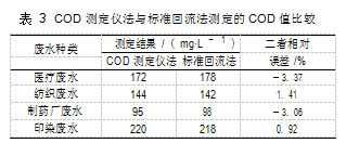 COD 測定儀法具有較好的精密度和準確度,且與標準回流法的測定結果的相對誤差較小,具有