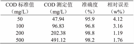 表 5 不同 COD 值的樣品測定值及其相對誤差