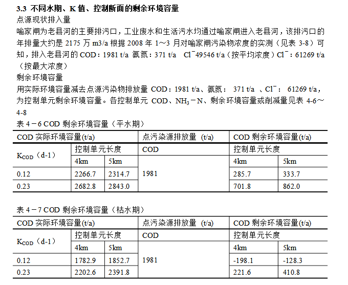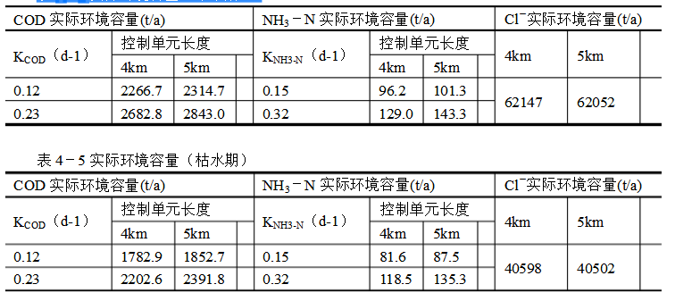 表4-4實(shí)際環(huán)境容量(平水期)