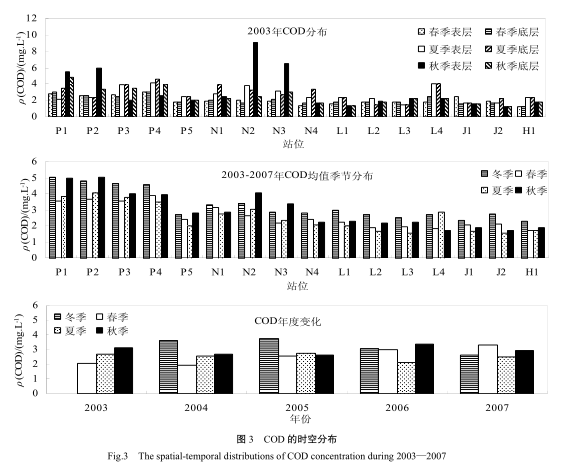 2003-2007 年間,廣州海域水體中COD 的時空分布特征